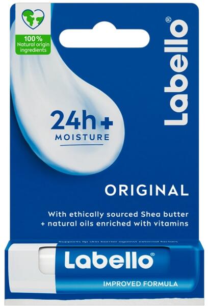 A Labello® 100%-ban természetes eredetű összetevőivel megvédi ajkait a hidegtől és a száraz levegőtől. Akár 24 órán át hidratál - klinikailag bizonyított. Újrahasznosított papírból készült tartó. 100%-ban klímasemlegesített.