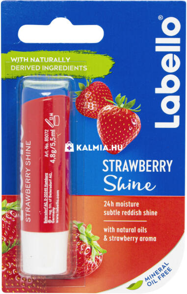 Kényeztesse ajkait a Labello Strawberry Shine segítségével. Az ápoló formula azonnal felolvad az ajkakon és akár 24 órán át hidratál. A gyümölcsös eper aroma kényezteti érzékeit, miközben színpigmentek kihangsúlyozzák az ajkak szépségét. Az elbűvölő és finoman ragyogó, puha ajkakért, egész napon át. Bőrbarát hatása bőrgyógyászatilag igazolt. Klinikailag tesztelt.