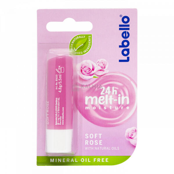 Varázsolja gyönyörűvé ajkait és emelje ki szépségét a Labello® Soft Rosé segítségével! A rózsa kivonattal gazdagított kényeztető formula azonnal felolvad az ajkakon és akár 24 órán át* hidratál.